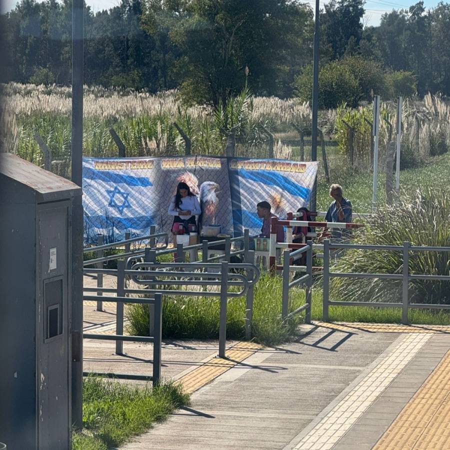 Según pudo observarse en el lugar, junto a la bandera había personas instaladas con una mesa y algunos elementos, lo que sugiere que no se trató solo de una colocación aislada sino de una presencia activa al menos durante parte del día.