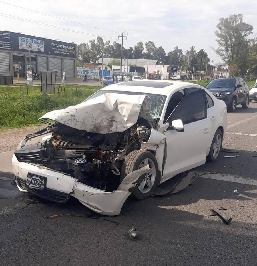 El Vento blanco quedó visiblemente dañado en la parte delantera, parado en el medio de la ruta. Después del impacto en el costado derecho del paragolpes trasero la Amarok salió hacia el centro del distribuidor y quedó frenada en el pasto.