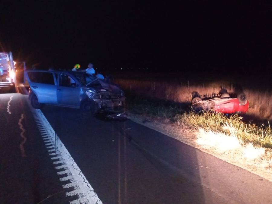 Tras el impacto inicial, el Gol rojo embistió a un Volkswagen Gol blanco, dominio SMT772, conducido por Leandro Cacholiati (32), y como consecuencia del segundo choque terminó volcado dentro de una zanja a la vera de la ruta.